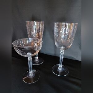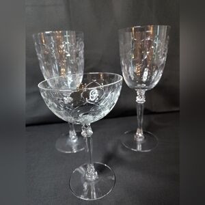 Vintage Fostoria Christiana, 1940's. Two Wine, One Sherbet