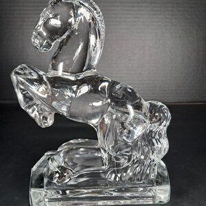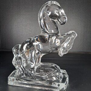 Vintage Fostoria, Clear Glass Press Molded Rearing Horse Figurine 1940s