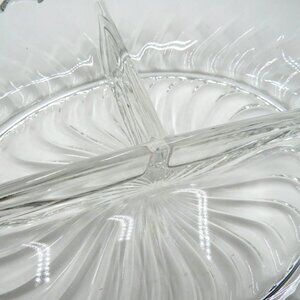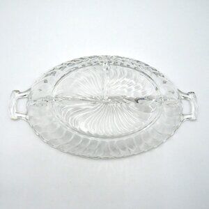 Vintage Fostoria Colonial Swirl Divided Oval Glass Relish Serving Dish Handles