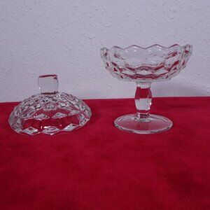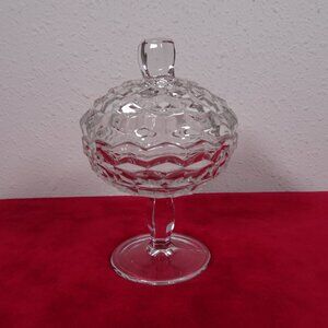 Vintage Fostoria Cubist Glass Compote Candy Dish & Lid American Pedestal 7"