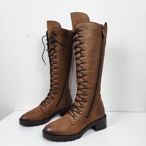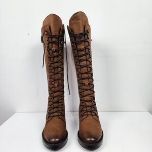 Vintage Foundry Co Brown Lace-Up Knee-High Henrietta Boots, Nwob **damage