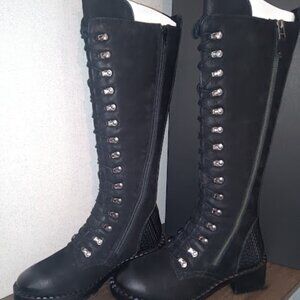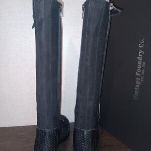 Vintage Foundry Co Size 8 Henrietta Black Leather Tall Boots Lace Zip up