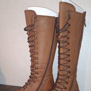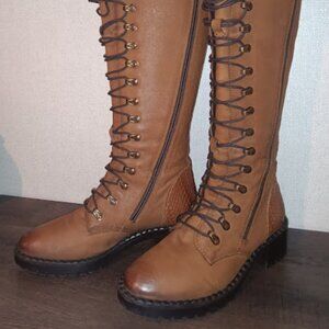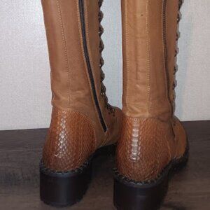 Vintage Foundry Co Size 8 Henrietta Brown Leather Boots Tall Combat Lace Zip Up