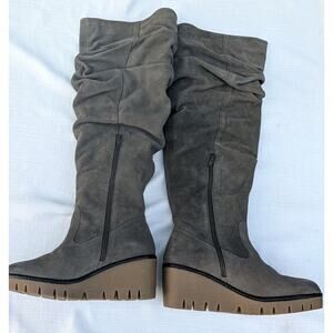 Vintage Foundry Co Womens Maisie Tall Suede Wedge Boots 9 Gray Slouch Soft Luxe