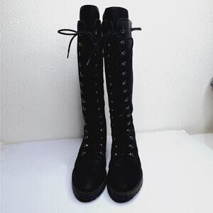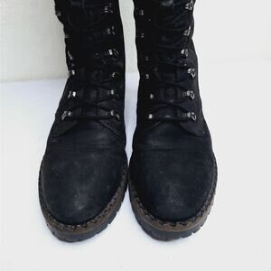 Vintage Foundry Henrietta Knee Combat Boots Chunky 9 Leather Lace Up Victorian