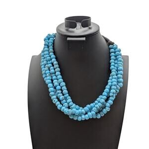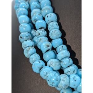 Vintage Four Strand Turquoise Glass African Trade Bead 22" Necklace. One end of the wrap is a little looser than the other but the strands are all still intact. Pre-owned, this necklace is in good vintage condition.