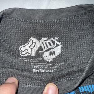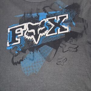 This product is a vintage Fox Racing shirt for men in size small, featuring a waffle knit thermal design in cyber gray color. Made of a cotton blend fabric, this long sleeve shirt with a crew neck is machine washable and suitable for all seasons. The shirt has a grunge and outdoor theme, with the Fox brand logo as accents. It is lightweight, stretchy, and easy to care for, making it a versatile and comfortable addition to any wardrobe for winter, fall, or spring wear.