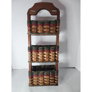 Vintage Foxcreek Basket Co Mahogany Wood Wicker 3 Tier Wall Mail Organizer