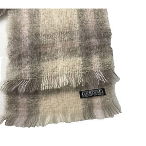 Vintage Foxford Mohair Wool Rectangle Scarf 9x58 Pink Gray Beige Plaid Ireland