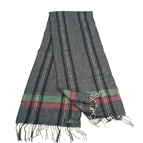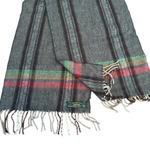 Vintage Foxford Woolen Mills Made in Ireland Gray 100% Lambs Wool Fringe Scarf