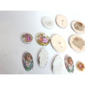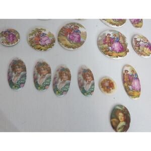 Vintage FragonardAntique Ceramic Picture Buttons Pins Craft More Set of 16 READ