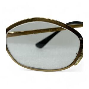 This vintage frame from France is a stylish accessory for any discerning adult. The double bridge and gold tone add a touch of sophistication to any outfit. Perfect for use as a librarian prop or as a decorative item in your home, these eyeglass frame is sure to catch the eye of any admirer. The intricate design and attention to detail make it a one-of-a-kind piece that you won't find anywhere else.