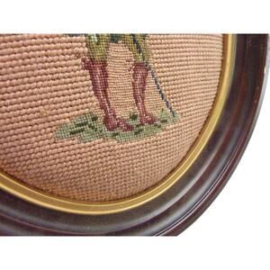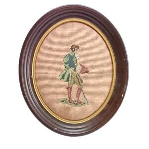 Vintage Framed Antique Ornate Oval Frame Needle Point Gentleman