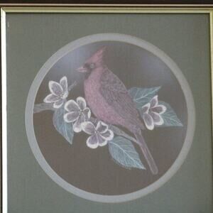 Vintage Framed Cardinal Bird Picture Print Square 9.5