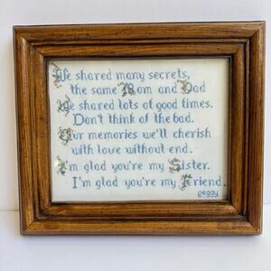 Vintage Framed Cross Stitch Embroidery Sister Gift Family Farmhouse Country