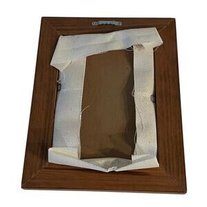 Gently displayed; no stains, tears, or loose threads on the stitching. Frame has minor surface wear consistent with age.