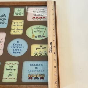 Vintage Framed Cross Stitch Sampler Inspirational Sayings Wall Art 14.5"x11.5"
