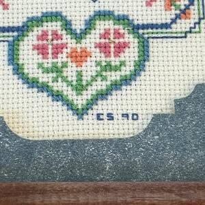 Vintage Framed Cross Stitch “There’s No Friend Like a Mother” Floral Heart 7"x5"
