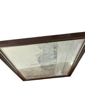 Vintage Framed Drawing The Capitol Williamsburg Virginia Signed Charles H Overly