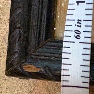 Decent vintage condition. Frame is a little loose and has some minor chipping in the wood but glass frame is in good shape, no chips or cracks. Plenty good for your gallery wall or to pair with other decor for display. Hardware on back of frame ready to hang.