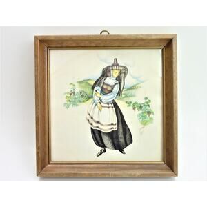 Vintage Framed Girl in Gape Field Print Winery Decor
