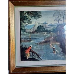 Vintage Framed Italian Art Work Antique Landscape with Figures by Domenichino