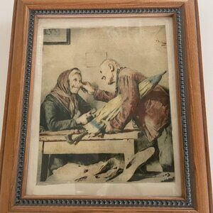 Vintage Framed Print On Silk Inspired By Pompeo Massani Good News