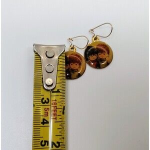 Vintage Fran Mar Enamel Earrings Kids Illustration Gold Tone Dangle Pierced Art