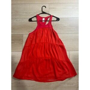 Vintage Francesca A-Line Tiered Tank Dress Womens Sze S Orange Pink Sleeveless