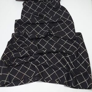 Features: Silver thread, scoop neck, ruffled cuff and waist, pattern bottom, mid zip back