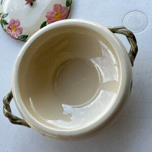 In wonderful condition, this Franciscan Desert Rose Dish and lid measures 8.5" diameter x 3.5" tall. Stamped on the back. No damage.