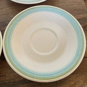 Comes with 4 saucer plates that are 6 1/4” long. All in good condition. One plate had small dots on it but it looks like that’s how it came. Please see photos :)