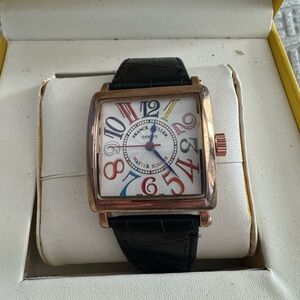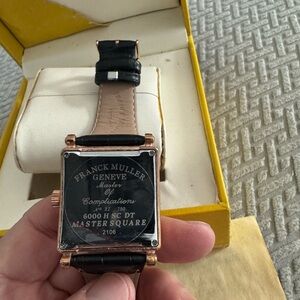 Elegant watch featuring a sleek design. I don’t know anything about this watch found it at an estate sale. The case is coming apart not sure if this is genuine or a knock off. Please ask any questions you may have.I believe this has never been worn.