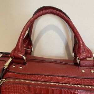 Vintage Franco Sarto Croc Embossed Satchel Crossbody Strap Red Faux Leather READ