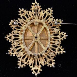 Vintage Francois Clear Rhinestone Gold Tone Large Cameo Brooch Pendant Duo