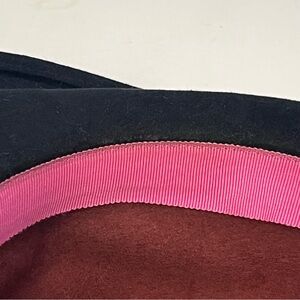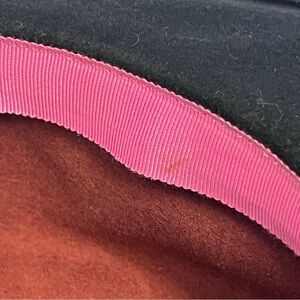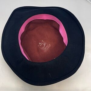 Hat is in decent pre-owned condition with some signs of wear and age. There are some all over marks and aging on the material especially on the top of the hat and on the inside. The pink ribbon inside hat has some marks and nicks. And though the hat is soft, it is a little misshapen. I've listed multiple up close pictures for reference. Please let me know if you have any questions or would like any additional photos.