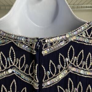 Vintage Frank Usher Women's Navy Silver Details Silk Beaded Top Size S Dressy