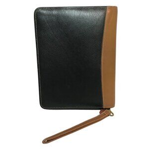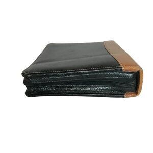 Vintage Franklin Quest 7 Ring Cowhide Leather Zip Binder Planner Cover Black USA