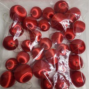 30 VTG Franks Christmas Ornaments Red Gold hanging thread Satin Thread Balls Unbreakable