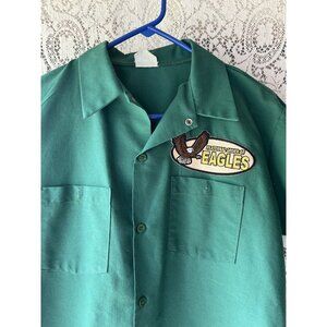 Vintage Fraternal Order of Eagles Patch Green Work Shirt Men’s Button Up SS