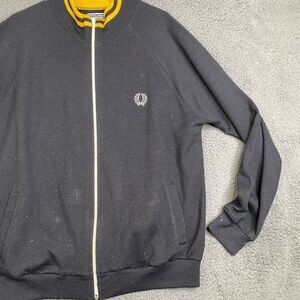 Vintage Fred Perry Black/Yellow Zip Up Sweater Size XL Knit Academia Preppy VTG