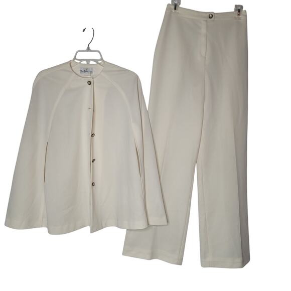 Vintage Fred Rothschild Poly 2pc Set Cape Pants Cream Small/Medium