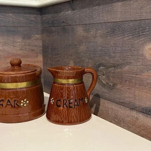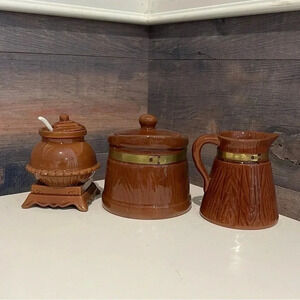 Vintage FredRoberts Company Made in Japan Brown Creamer Mustard and Sugar set