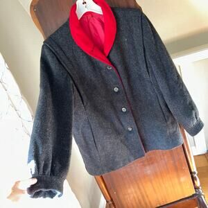 Vintage Freddi-Gail Wool Union Made Jacket Size Large Gray Red Coat - read