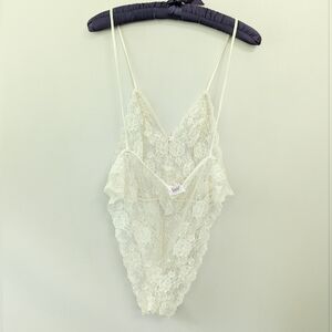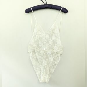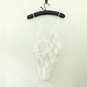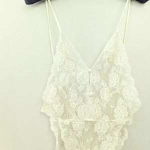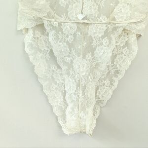 Vintage Fredericks Of Hollywood Ivory Sheer Lace Teddy French Cut