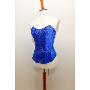 1990s Fredricks of Hollywood blue sequence corset bustier. Excellent condition. Size S