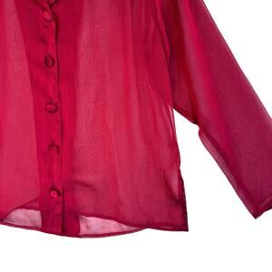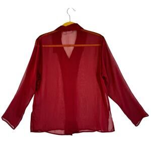 Vintage Fredricks of Hollywood Sheer Blouse SM Red Button Up Collared Negligée