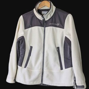 Vintage Free Country Ivory Grey Poly Fleece Zip Up Jacket size M
