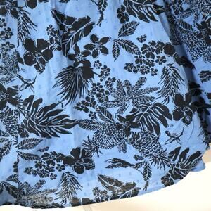 Vintage Free People Blue Tropical Smocked Cotton Mini Dress 4 Boho Travel. Wedding guest. Party. Cocktail. Strappy back - adjustable. Square neck