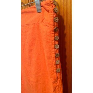 A stylish addition to any wardrobe, this vibrant orange maxi skirt from Free People features a unique button-accented side and a flattering side slit. The cotton fabric ensures comfort and breathability, making it ideal for a variety of settings.